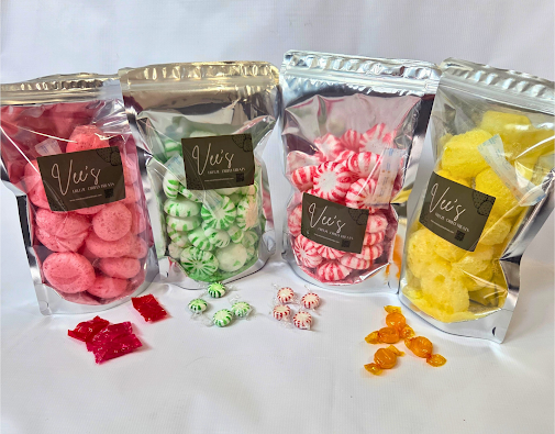 Crisp, cool, and irresistibly bold, our freeze-dried peppermint, spearmint, butterscotch, and cinnamon discs deliver classic candy flavor with a light, crunchy twist. Bursting with freshness, sweetness, and a satisfying snap, these aren’t your grandma’s mints… they’re next-level delicious!